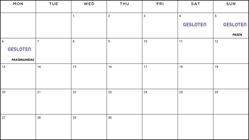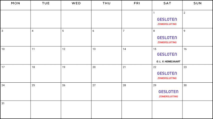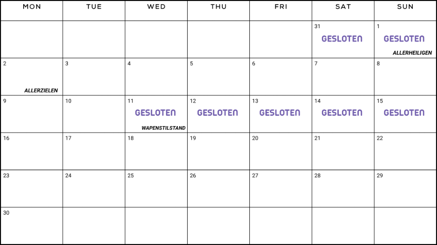 ZON- EN FEESTDAGEN | GESLOTEN |