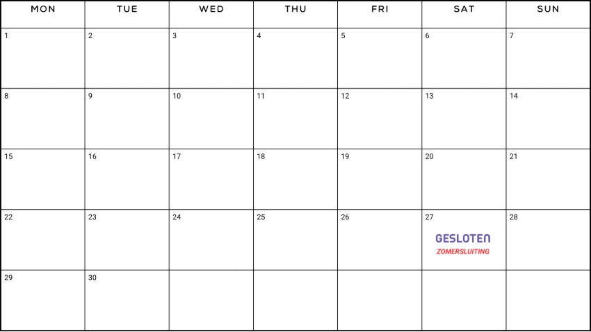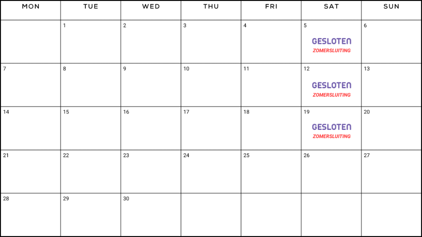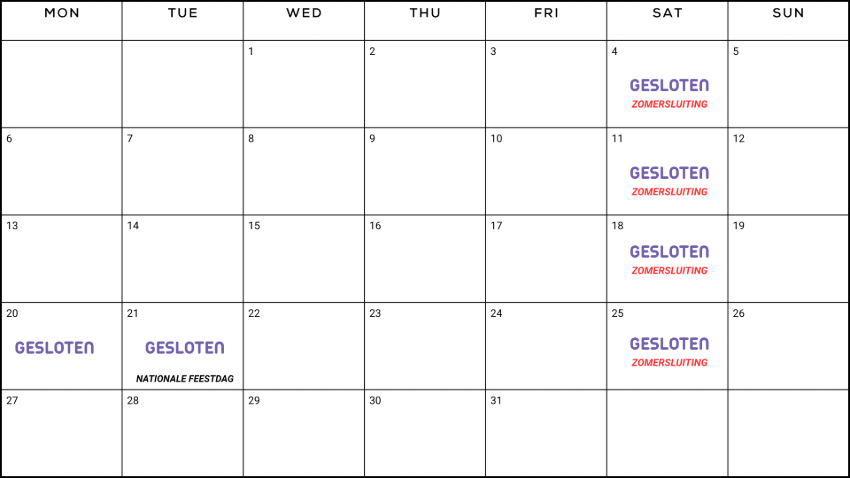 Bij BESA nemen we even een momentje om te ontspannen tijdens nationale feestdagen in België, deze vind je terug in bovenstaande kalender. Maar maak je geen zorgen, onze online winkel staat altijd voor je klaar! Plaats je bestelling en zodra de feestdag voorbij is, zijn we weer uitgerust en paraat om je te helpen op de eerstvolgende werkdag. Geniet van het gemak van onze 24/7 online winkel, zelfs tijdens afwijkende openingstijden.