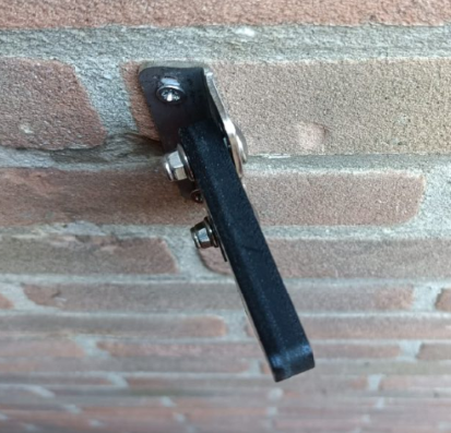 Dit is de deurklinkhaak, hij komt in een kleine verpakking met twee schroefjes. Dus heel makkelijk te monteren en hij is ook nog in de hoogte af te stellen.