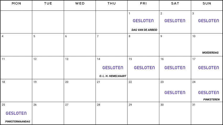 ZON- EN FEESTDAGEN | GESLOTEN |