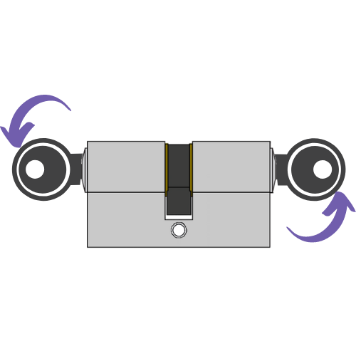 Draai de sleutel lichtjes naar links of rechts tot je voelt dat de cilinder loskomt van het slotmechanisme. Geef een beetje lichte tegendruk aan de andere zijde dan waar de sleutel insteekt.