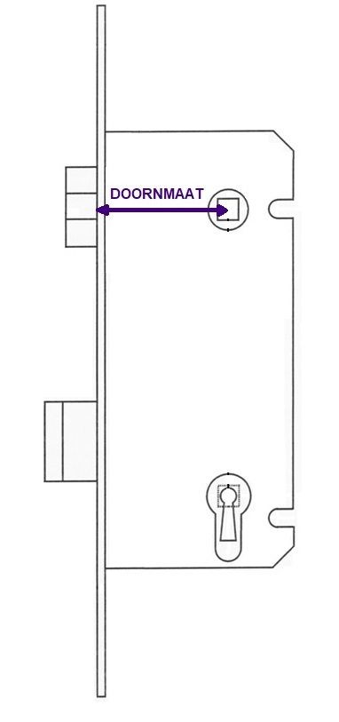 2) Doornmaat: de afstand vanaf de rand van de voorplaat (dikte voorplaat inbegrepen) tot midden krukgat.