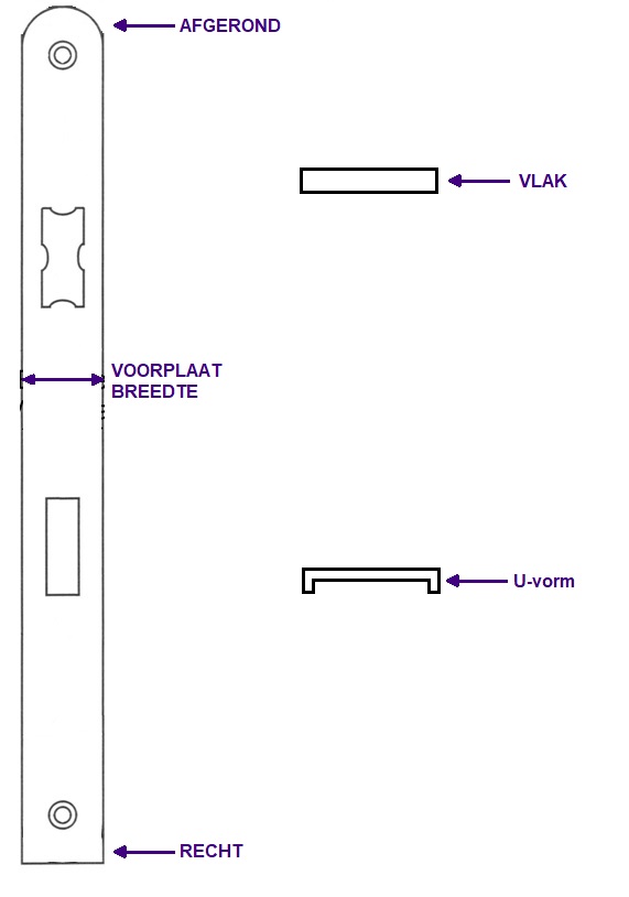 3) Voorplaat: breedte ( van 16 tot 25 mm) en vorm ( vlak, U-vorm, recht of afgerond).